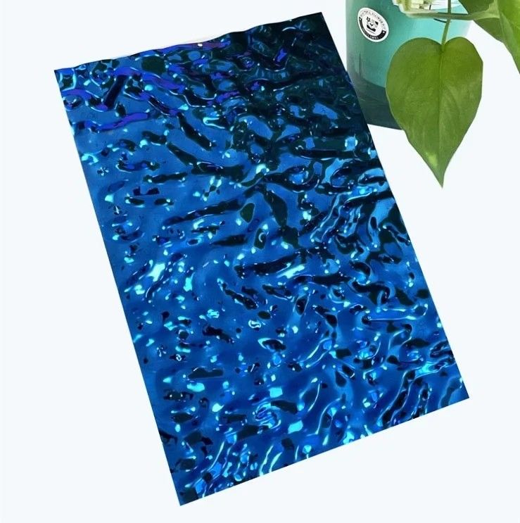 La hoja de ondulación de agua de acero inoxidable azul de zafiro es un material decorativo, una pequeña hoja de ondulación de agua de acero inoxidable con aspecto de gema azul.Este material se utiliza generalmente para decoración y diseño de artículos, y su apariencia puede dar a las personas un efecto de ondulación de agua, y al mismo tiempo presenta colores similares a los zafiros.